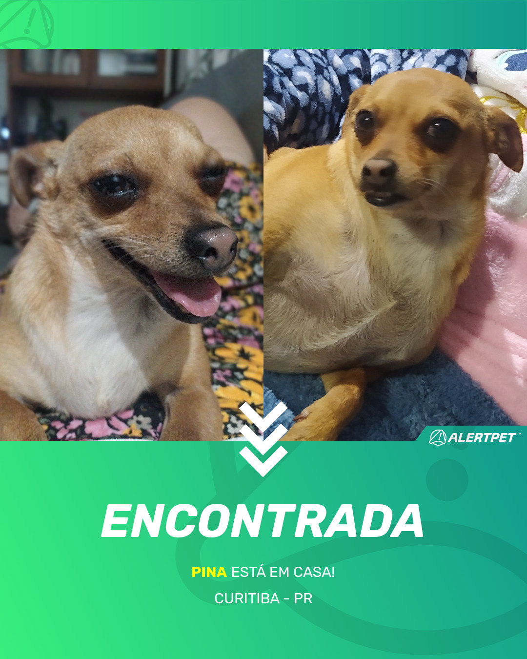 Depois de dois meses a cadelinha foi finalmente localizada graças a um anúncio da AlertPet