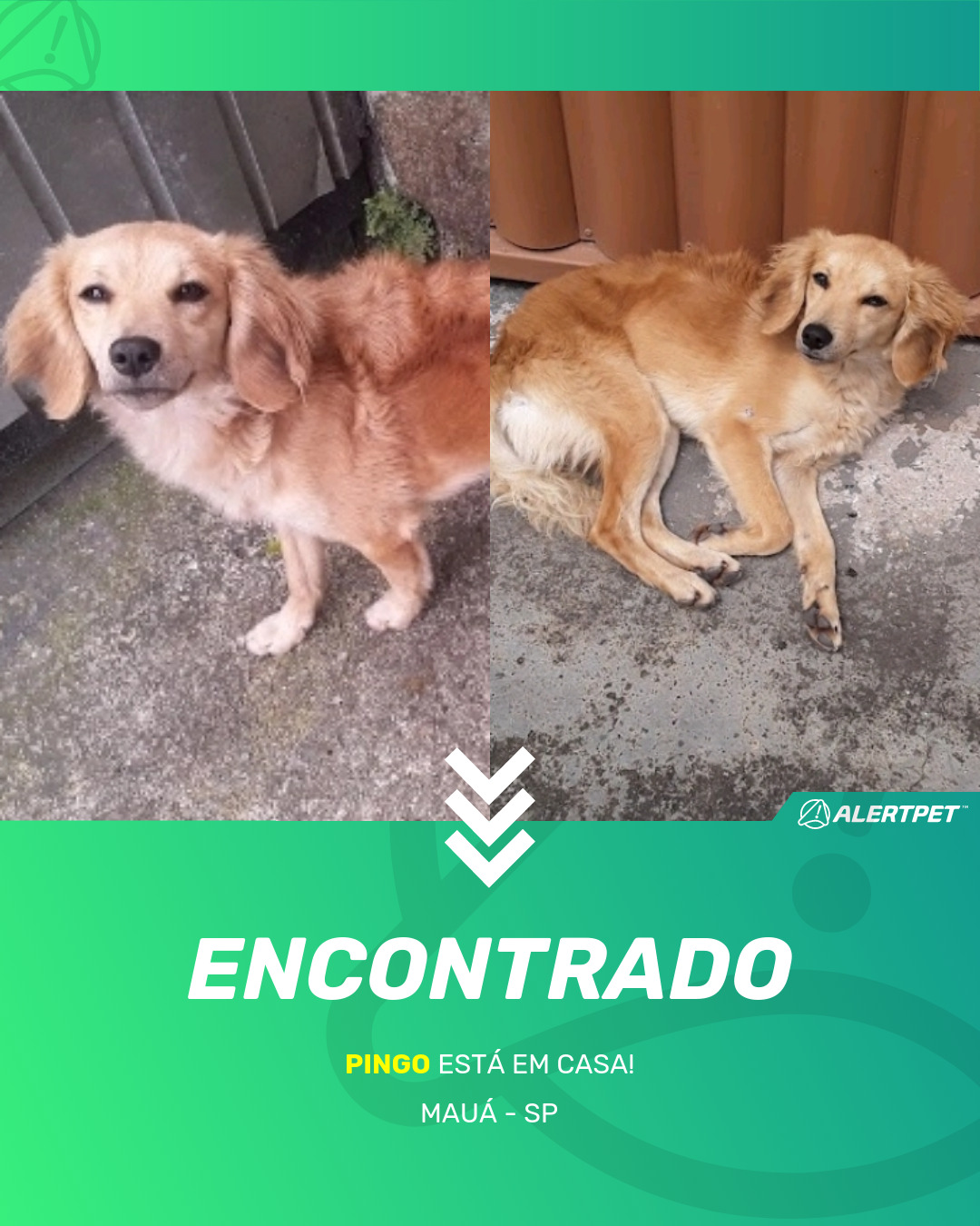 Depois de dois meses a cadelinha foi finalmente localizada graças a um anúncio da AlertPet
