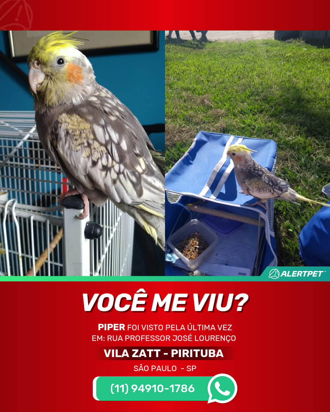 #alertpet #procurase #PássaroDesaparecido #São Paulo #procuramosPiper