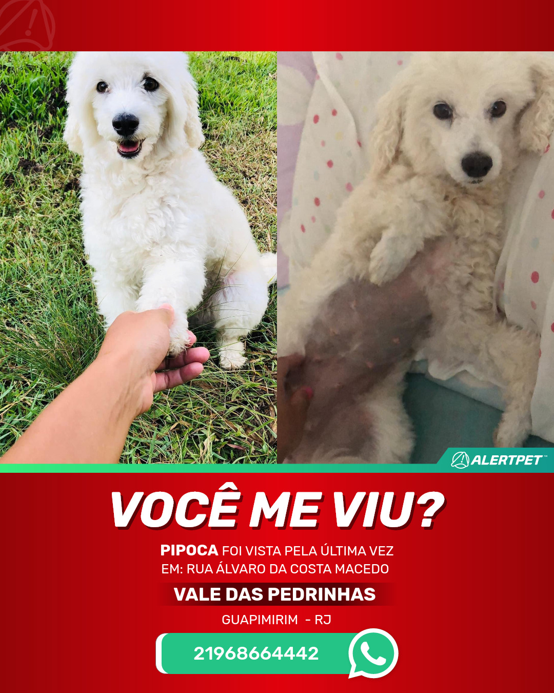 Ela atende com o nome de Pipoca ,por favor me ajude a encontrá-la qualquer informação 21968664442