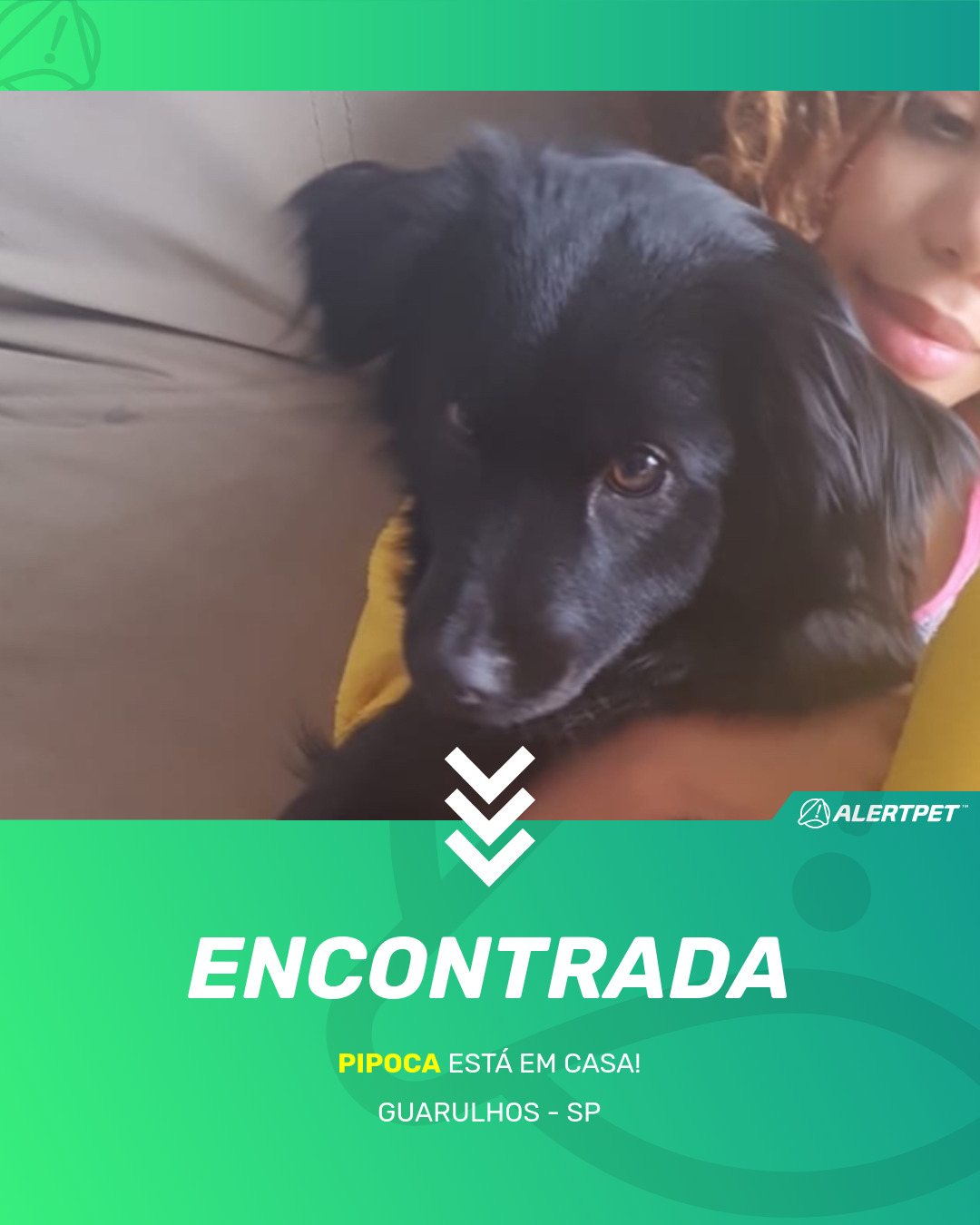 Depois de dois meses a cadelinha foi finalmente localizada graças a um anúncio da AlertPet