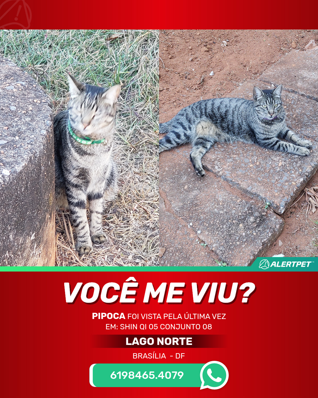 #AlertPet #Procurase #GatoDesaparecido #Brasilia #ProcuramosPipoca
