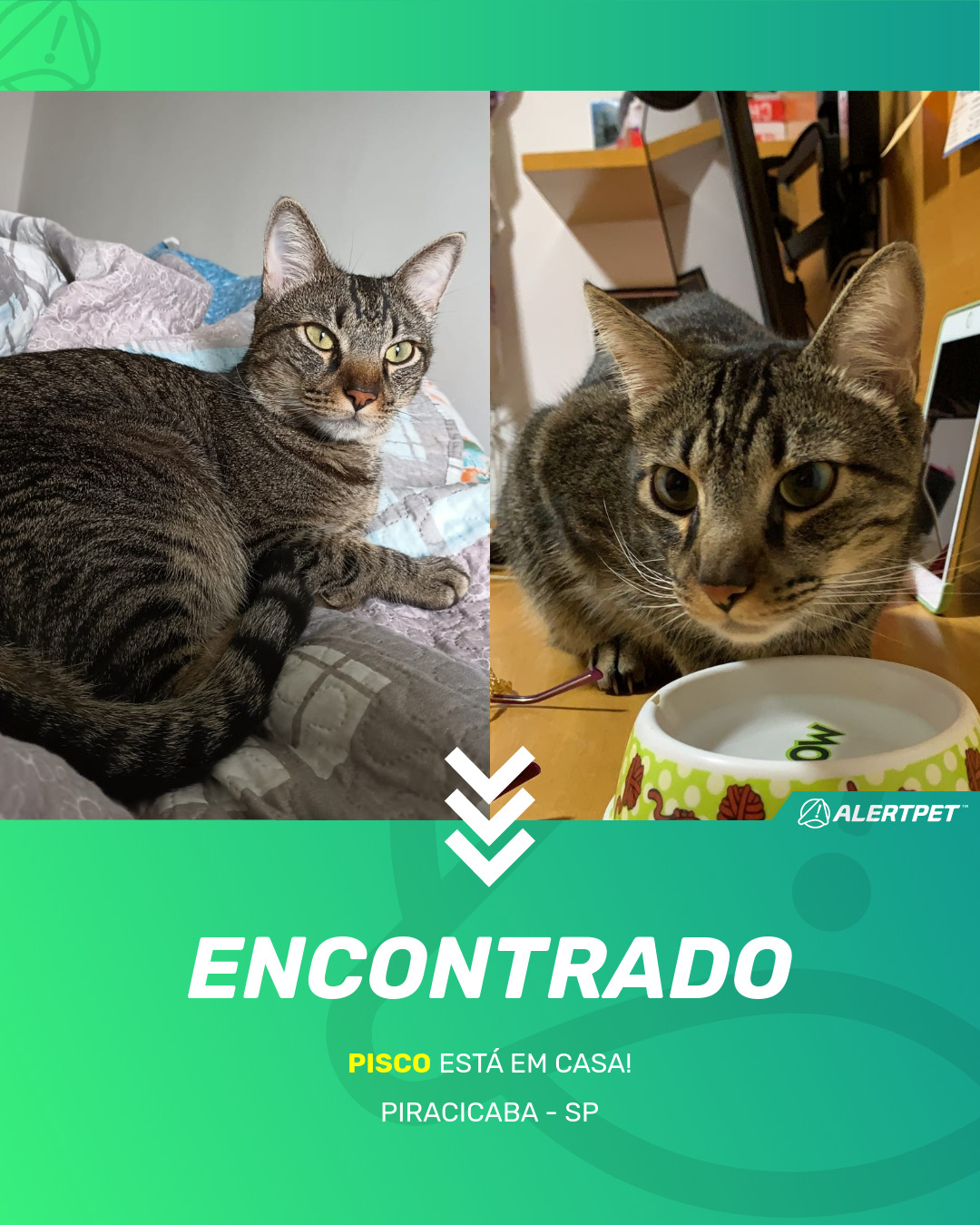 Depois de dois meses a cadelinha foi finalmente localizada graças a um anúncio da AlertPet