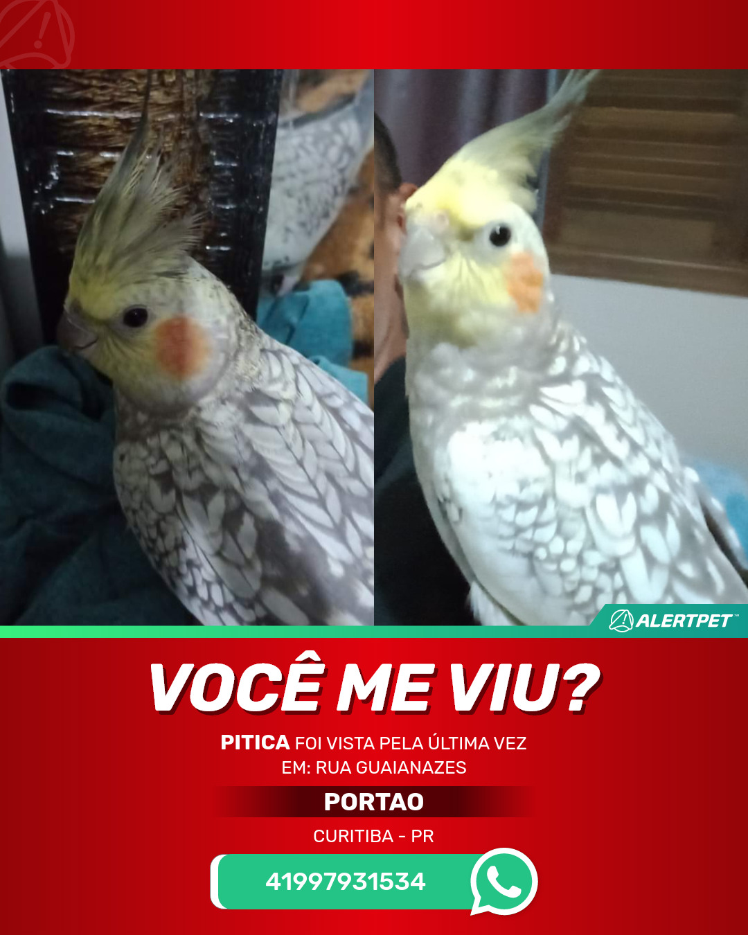 #AlertPet #Procurase #PassaroDesaparecido #Curitiba #ProcuramosPitica