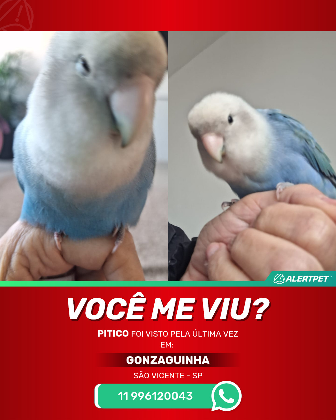 #AlertPet #Procurase #PassaroDesaparecido #SaoVicente #ProcuramosPitico
