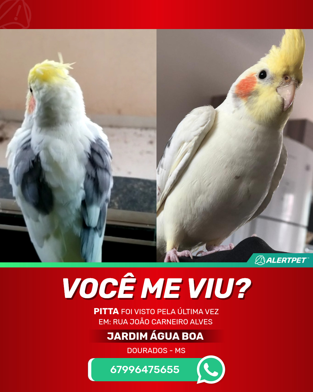 #AlertPet #Procurase #PassaroDesaparecido #Dourados #ProcuramosPitta