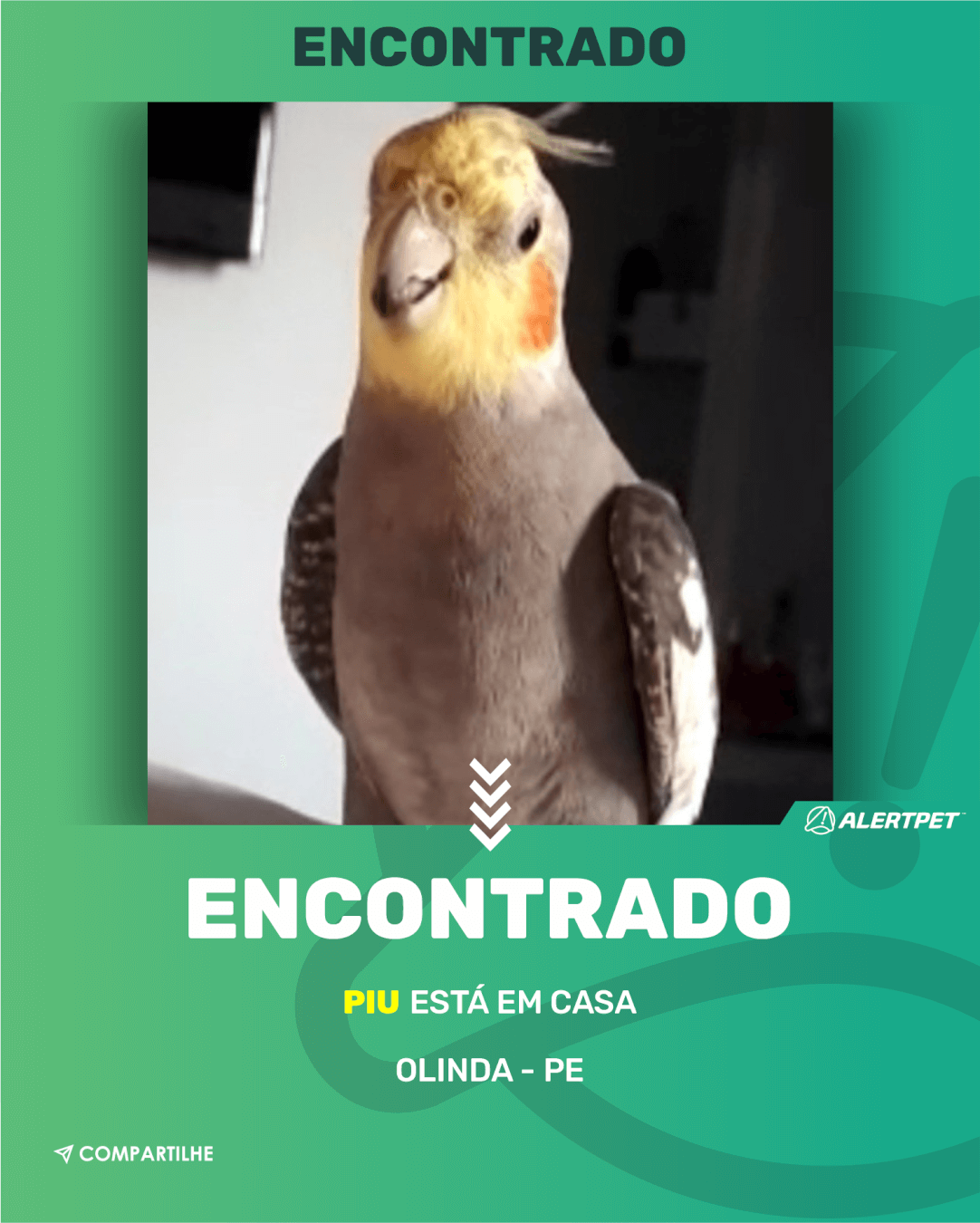 Ooi pessoal, estou aqui para implorar que me ajudem a encontrar minha calopsita, ela se chama piu e fugiu dia 02/02 por volta das 10 horas próximo ao colegio Dom em Olinda. Piu é manso, sabe assobiar e cantar o hino do Brasil. Imploro que me ajudem compartilhando essa publicação. Sou de Casa Caiada, Olinda - Pernambuco 081994819053 Jaylla 081994520104 Wellingthon