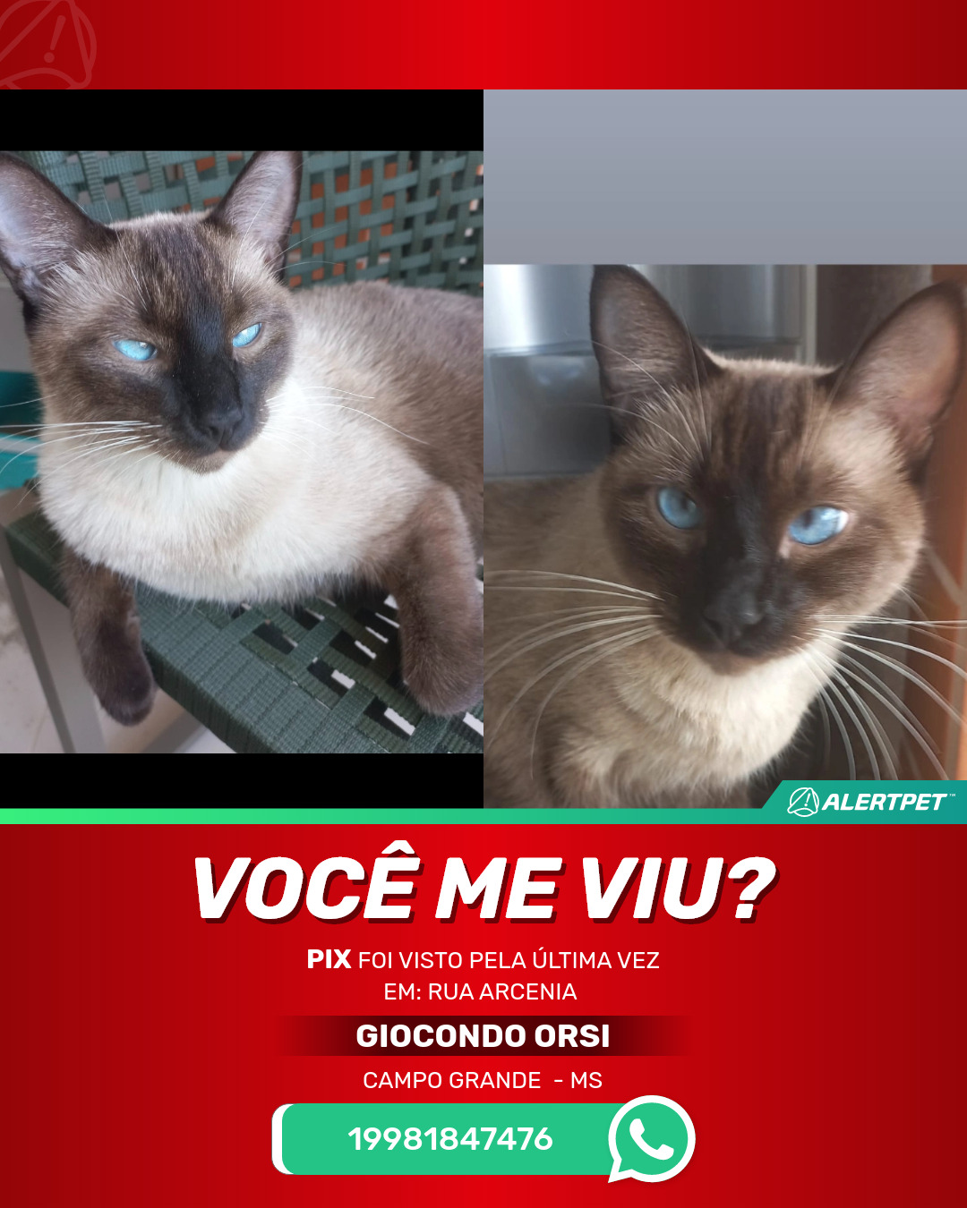 #AlertPet #Procurase #GatoDesaparecido #CampoGrande #ProcuramosPix