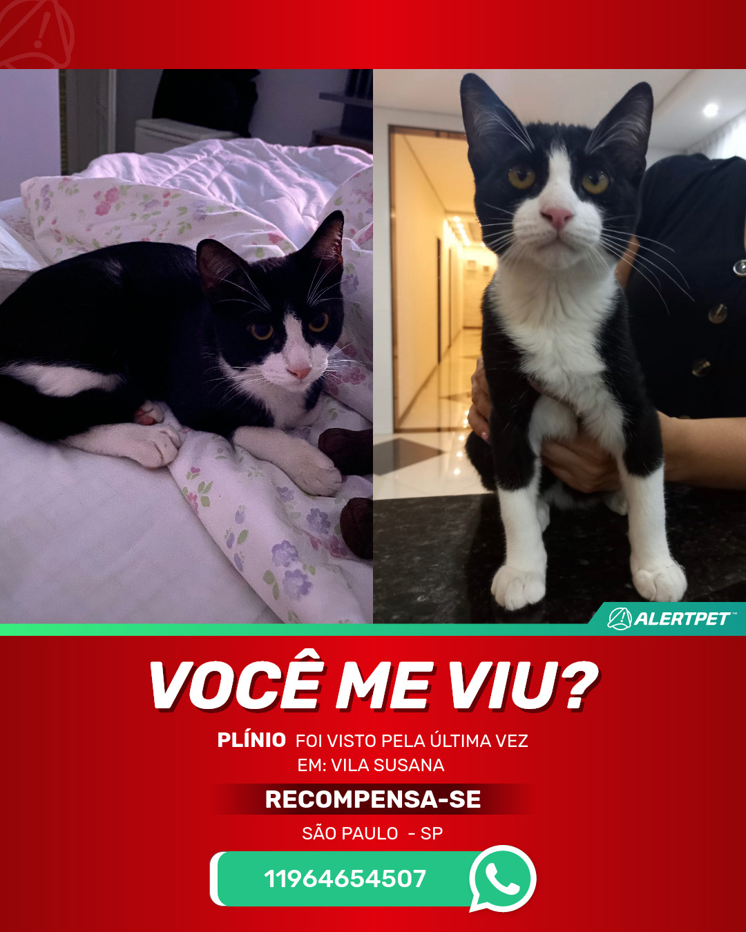 #AlertPet #Procurase #GatoDesaparecido #SaoPaulo #ProcuramosPlinio