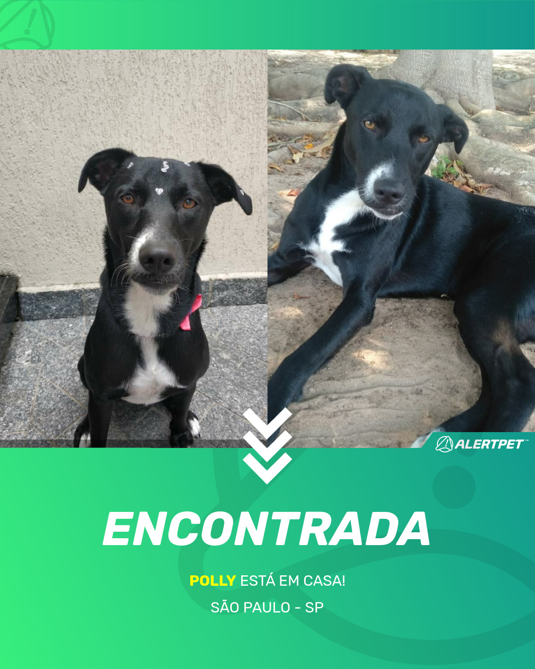 Depois de dois meses a cadelinha foi finalmente localizada graças a um anúncio da AlertPet