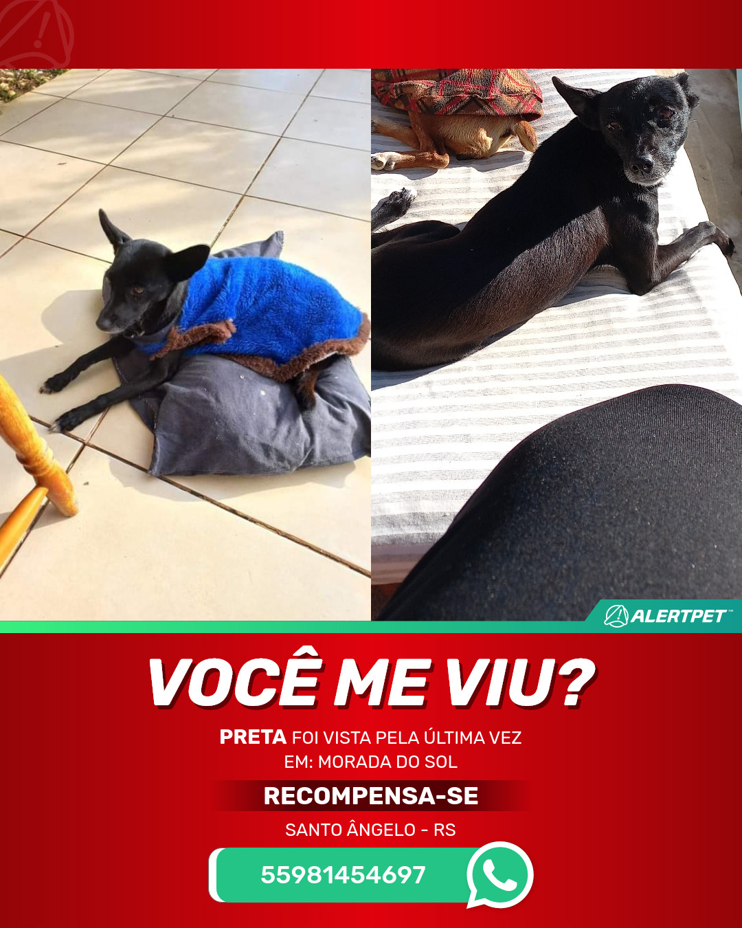 #AlertPet #Procurase #CachorroDesaparecido #SantoAngelo #ProcuramosPreta