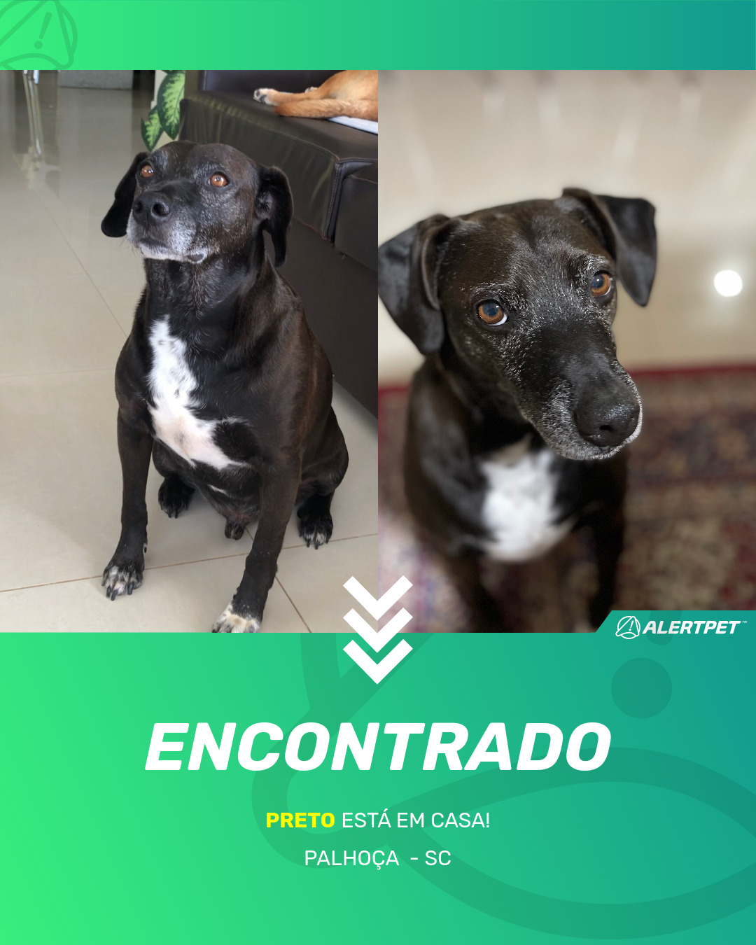Depois de dois meses a cadelinha foi finalmente localizada graças a um anúncio da AlertPet