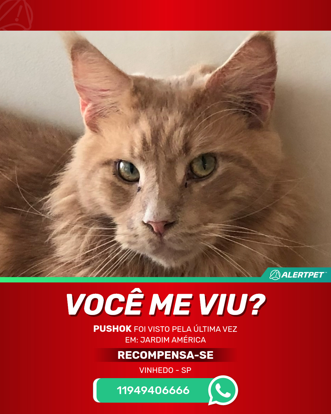 #AlertPet #Procurase #GatoDesaparecido #Vinhedo #ProcuramosPushok