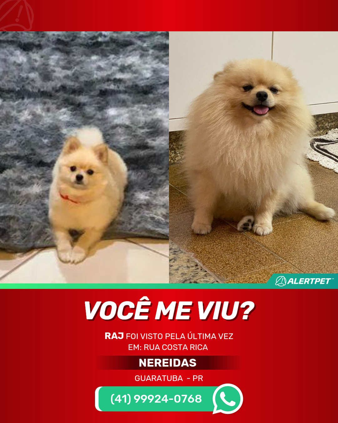 ❗ Visto pela última vez em: Rua Costa Rica