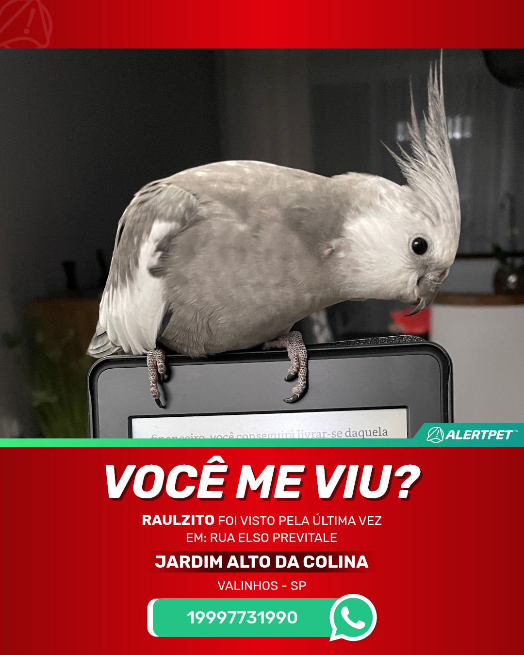 #AlertPet #Procurase #PassaroDesaparecido #Valinhos #ProcuramosRaulzito