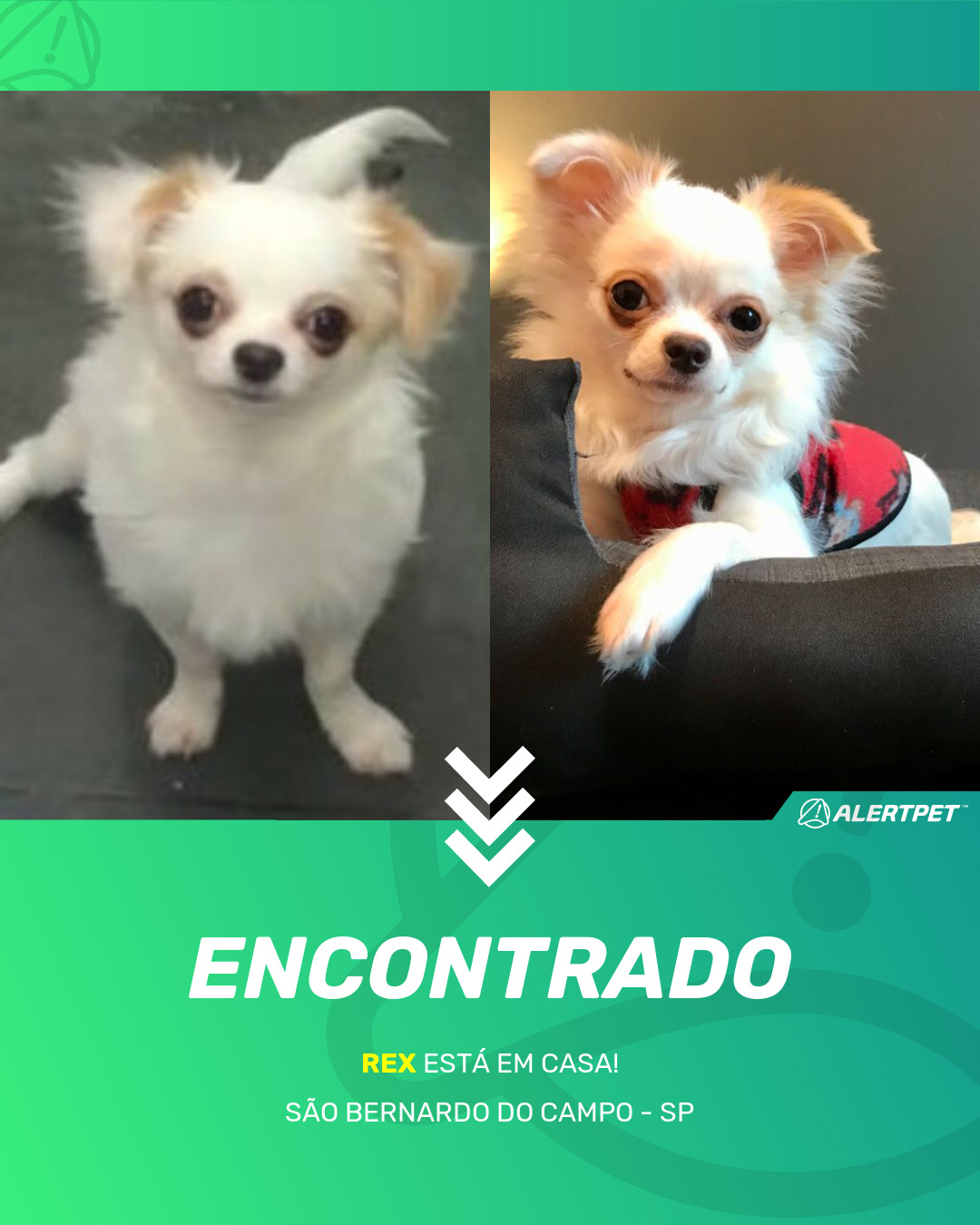 Depois de dois meses a cadelinha foi finalmente localizada graças a um anúncio da AlertPet