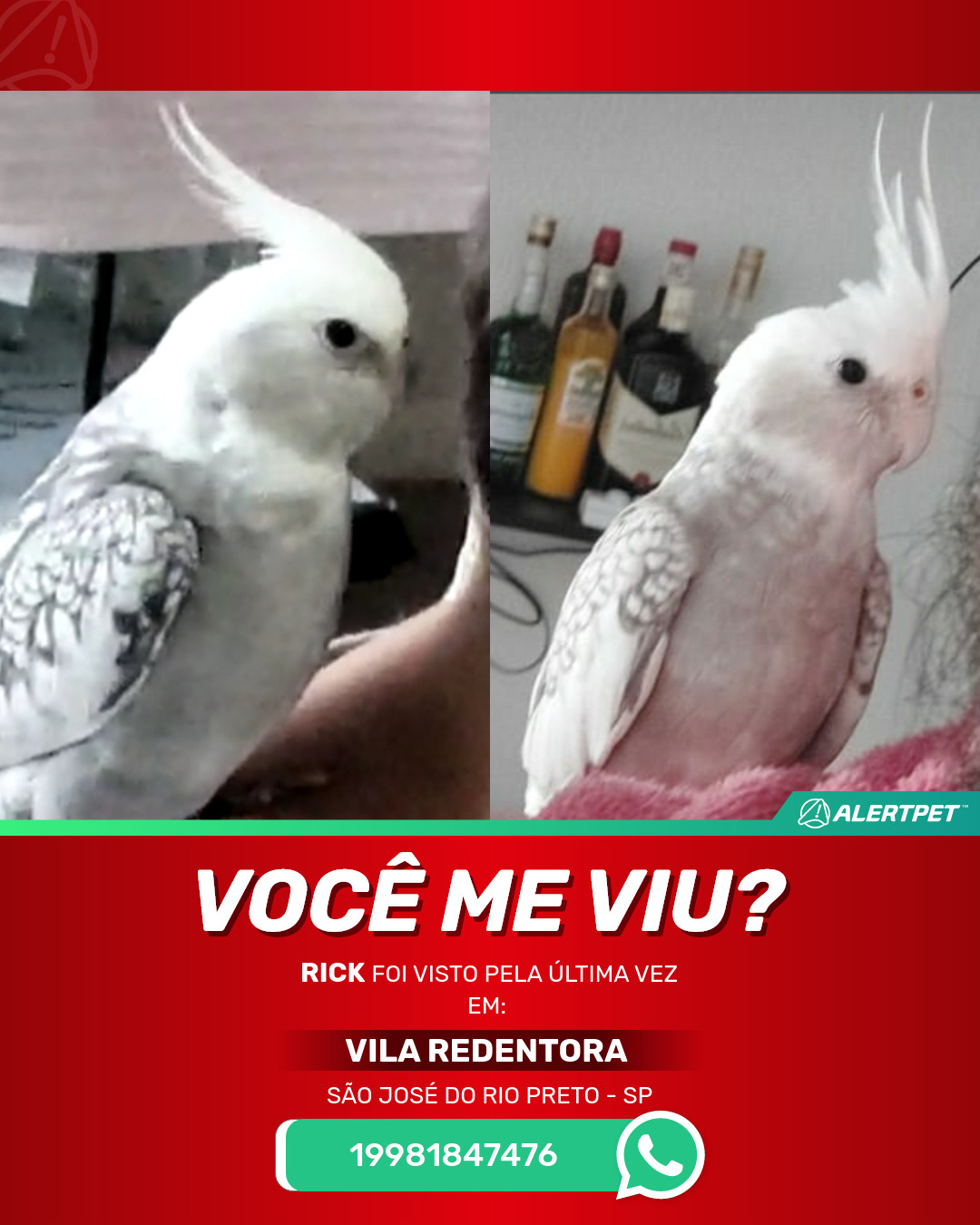 #AlertPet #Procurase #PassaroDesaparecido #SAoJosEDoRioPreto #ProcuramosRick