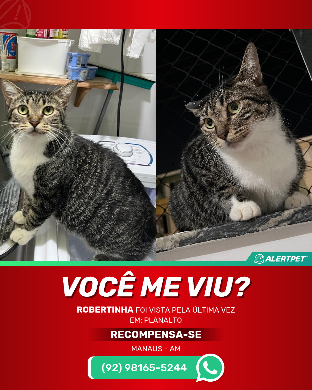 #AlertPet #Procurase #GatoDesaparecido #Manaus #ProcuramosRobertinha