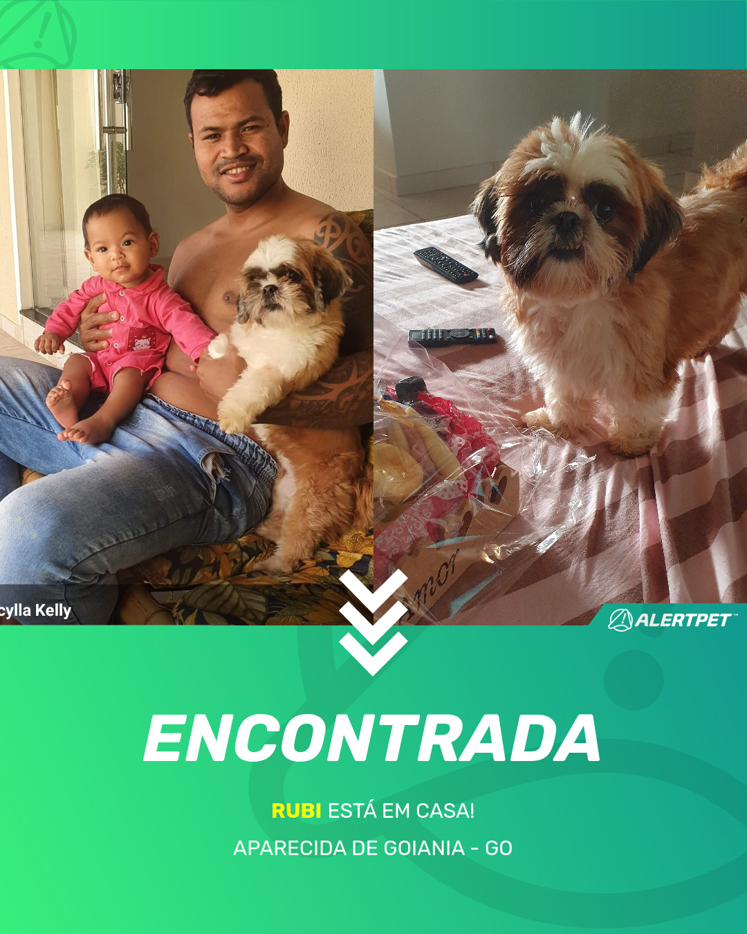 Depois de dois meses a cadelinha foi finalmente localizada graças a um anúncio da AlertPet