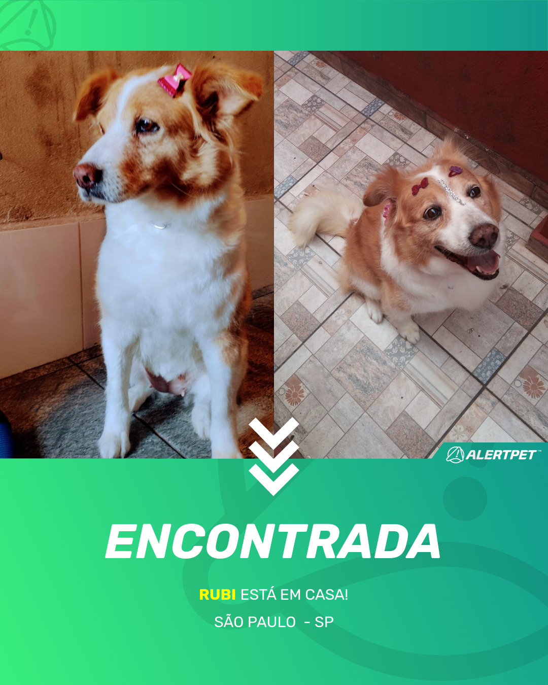 Depois de dois meses a cadelinha foi finalmente localizada graças a um anúncio da AlertPet