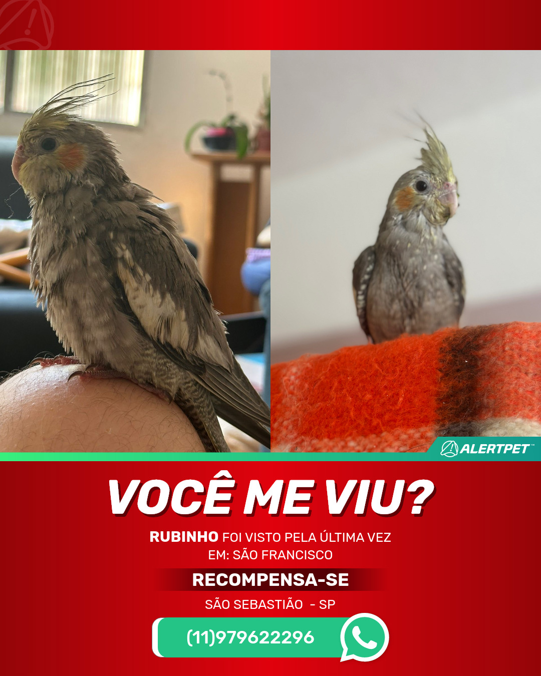 #AlertPet #Procurase #PassaroDesaparecido #SaoSebastiao #ProcuramosRubinho