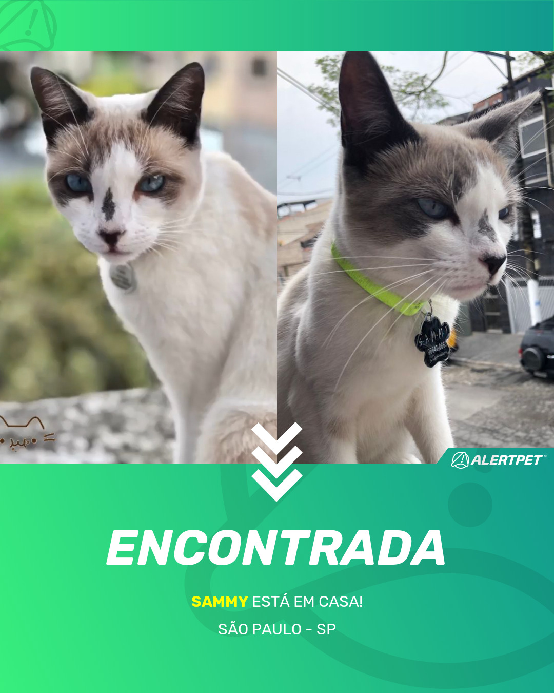 Depois de dois meses a cadelinha foi finalmente localizada graças a um anúncio da AlertPet