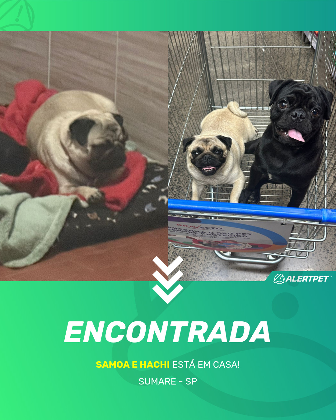 Depois de dois meses a cadelinha foi finalmente localizada graças a um anúncio da AlertPet