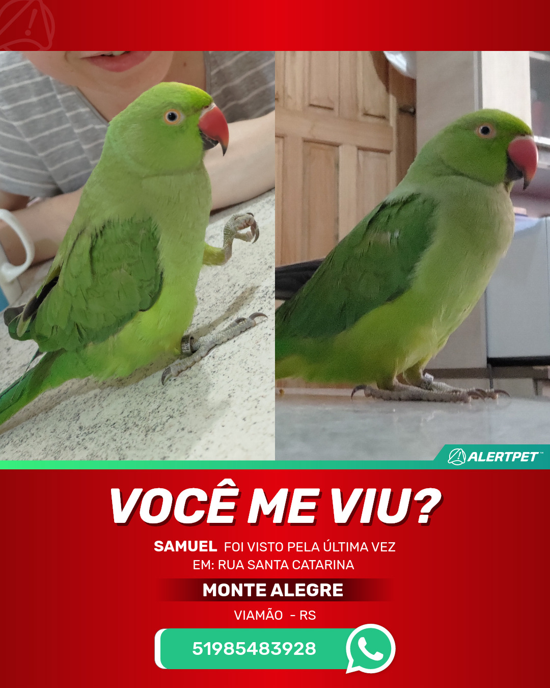 #AlertPet #Procurase #PassaroDesaparecido #Viamao #ProcuramosSamuel