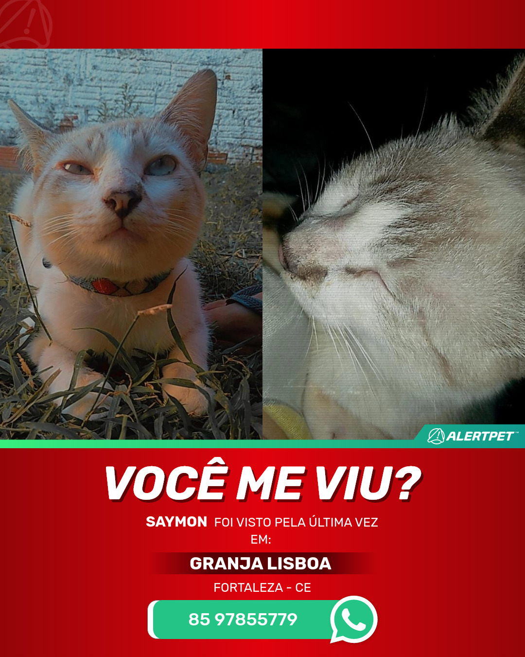#AlertPet #Procurase #GatoDesaparecido #Fortaleza #ProcuramosSaymon