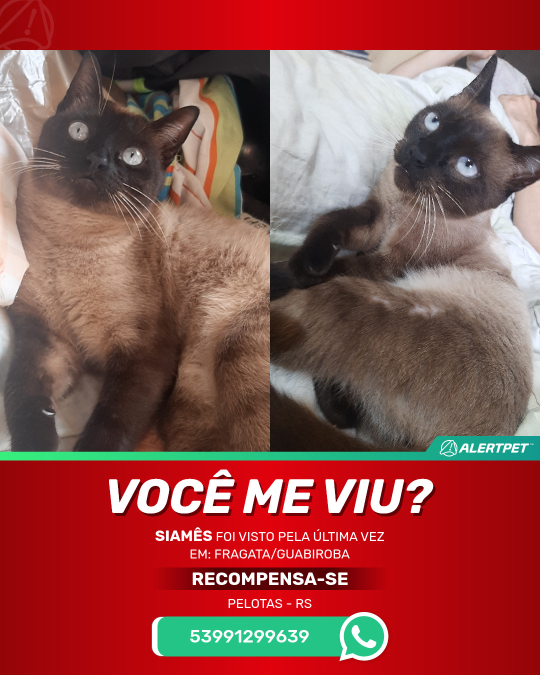 #AlertPet #Procurase #GatoDesaparecido #Pelotas #ProcuramosSiames