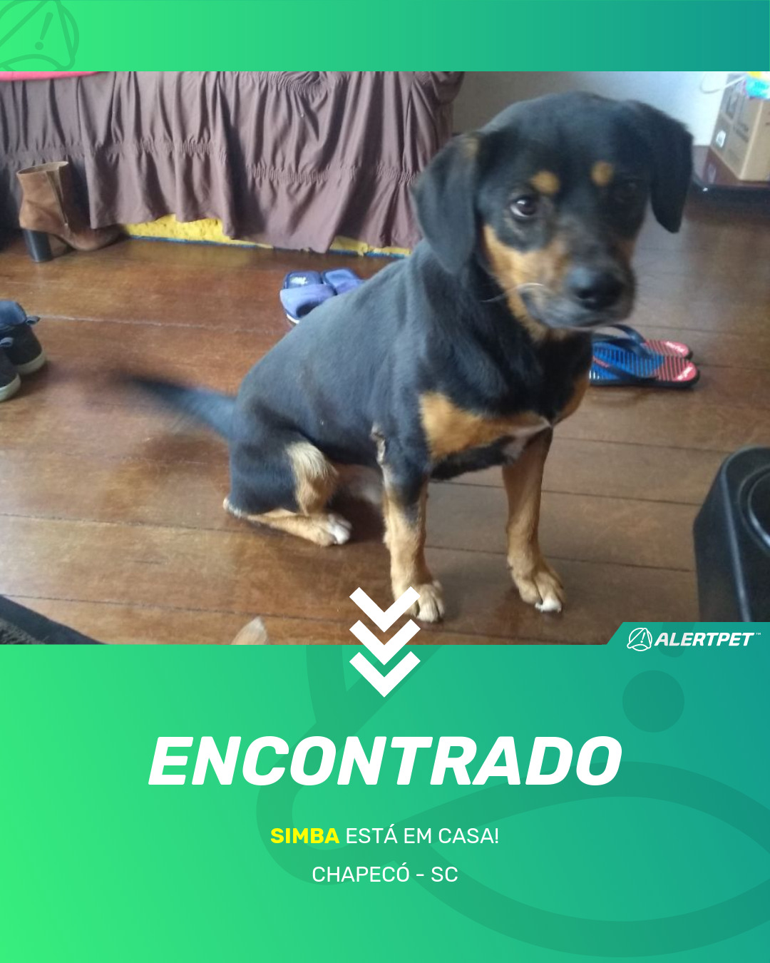 Depois de dois meses a cadelinha foi finalmente localizada graças a um anúncio da AlertPet