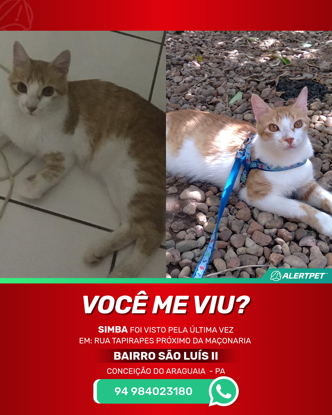 #alertpet #procurase #GatoDesaparecido #Conceição do Araguaia #procuramosSimba