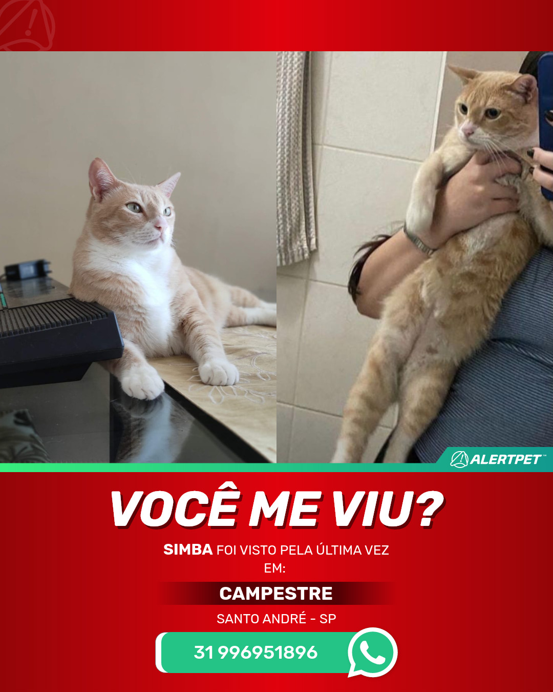 #AlertPet #Procurase #GatoDesaparecido #SantoAndre #ProcuramosSimba