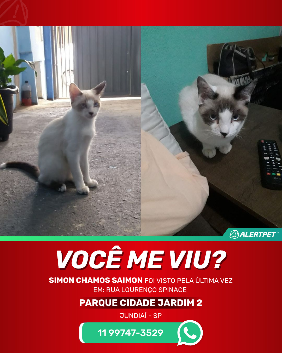 #AlertPet #Procurase #GatoDesaparecido #Jundiai #ProcuramosSimonChamosSaimon