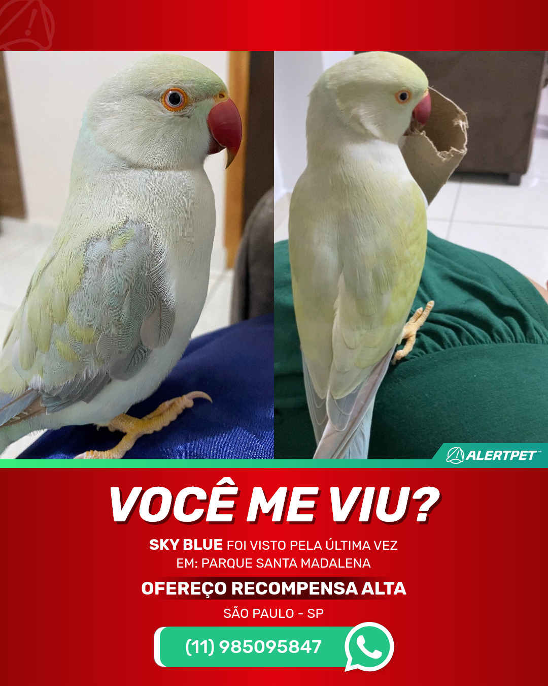#AlertPet #Procurase #PassaroDesaparecido #SaoPaulo #ProcuramosSkyBlue
