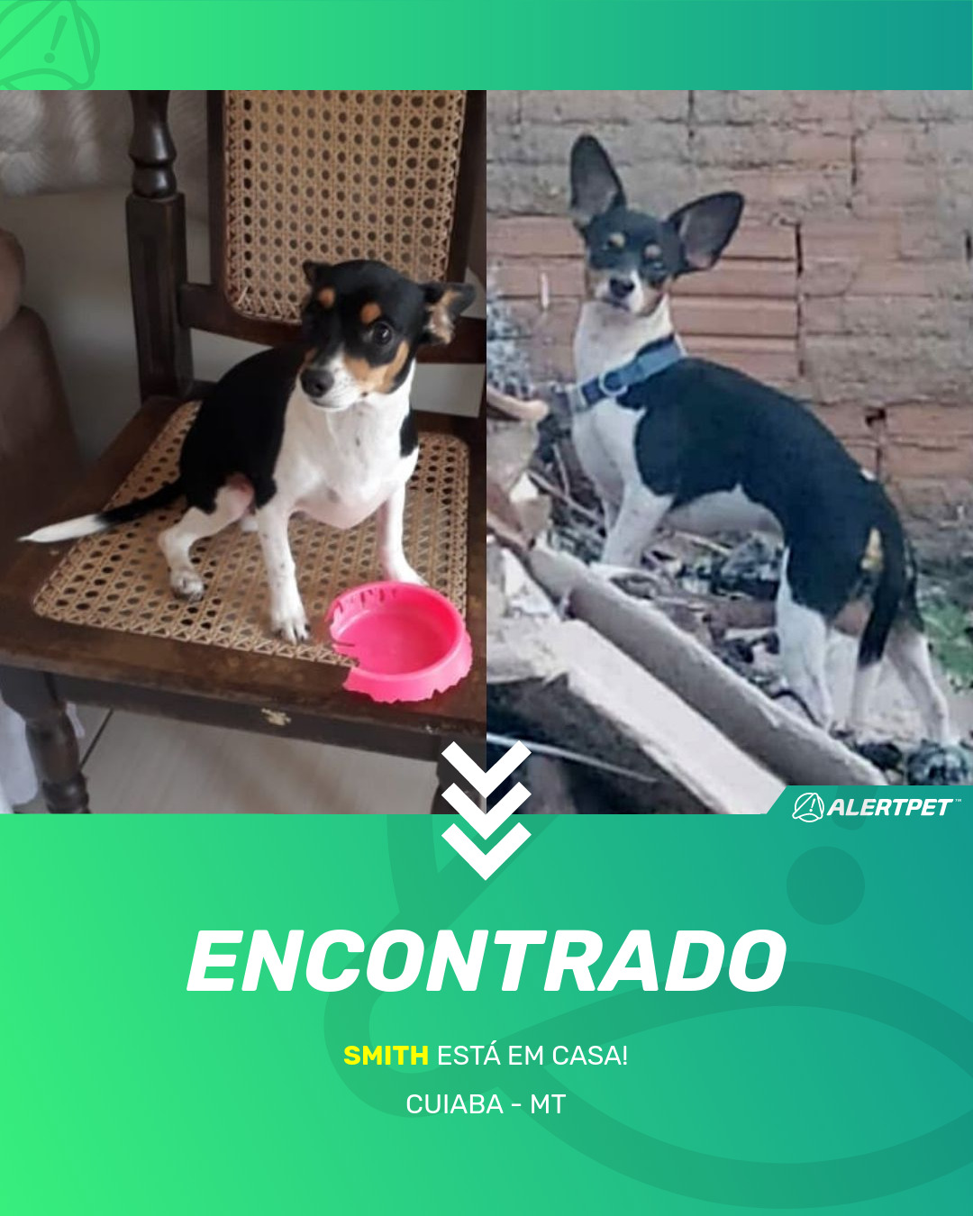 Depois de dois meses a cadelinha foi finalmente localizada graças a um anúncio da AlertPet
