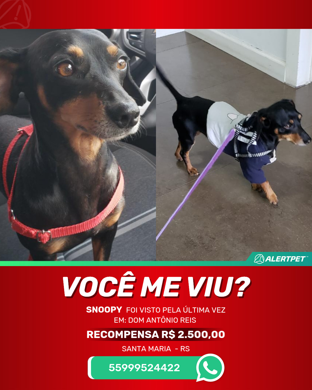 #AlertPet #Procurase #CachorroDesaparecido #SantaMaria #ProcuramosSnoopy