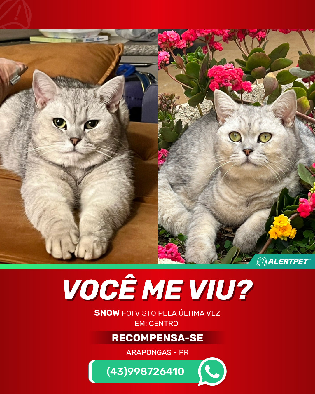 #AlertPet #Procurase #GatoDesaparecido #Arapongas #ProcuramosSnow
