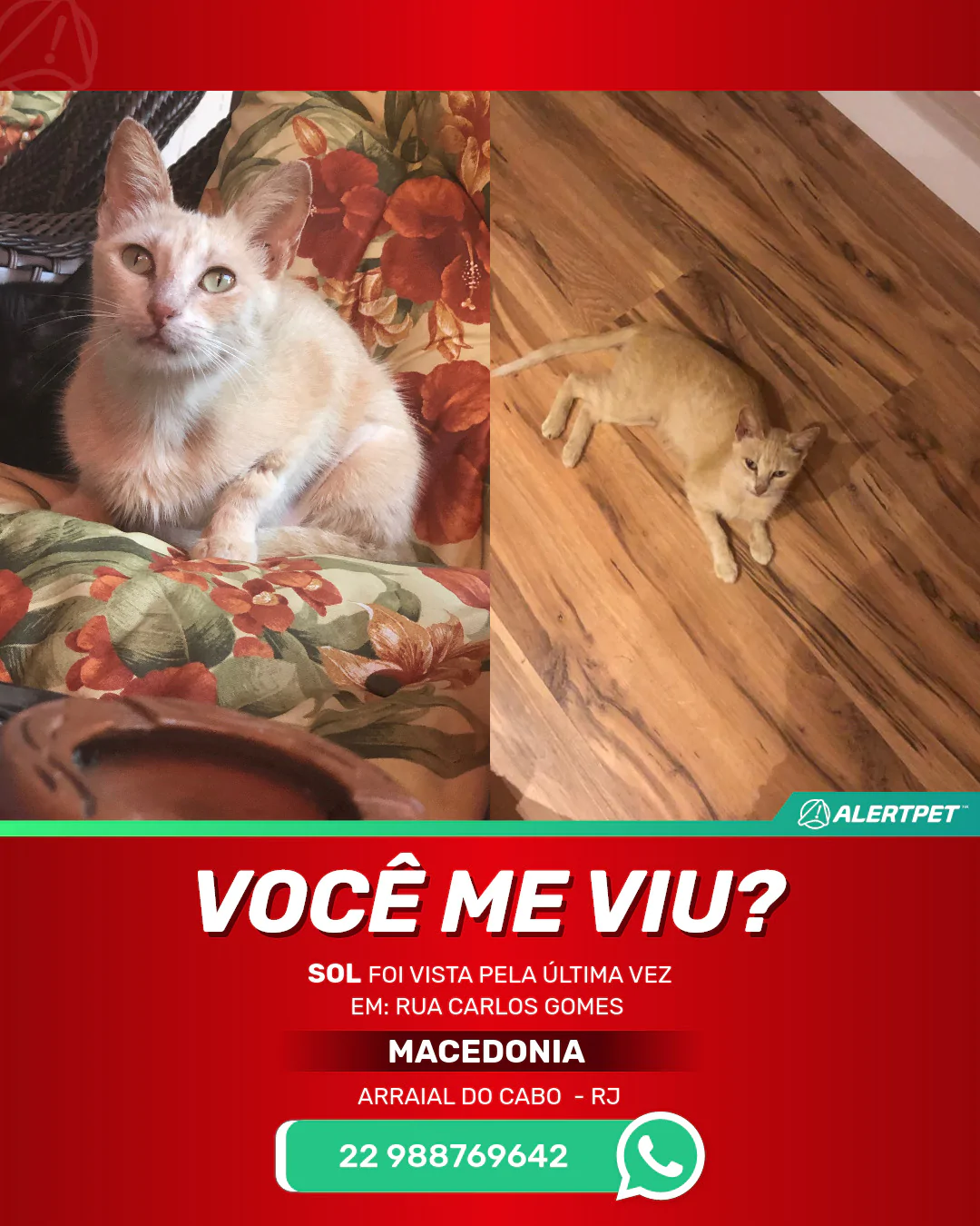 #AlertPet #Procurase #GatoDesaparecido #ArraialDoCabo #ProcuramosSol