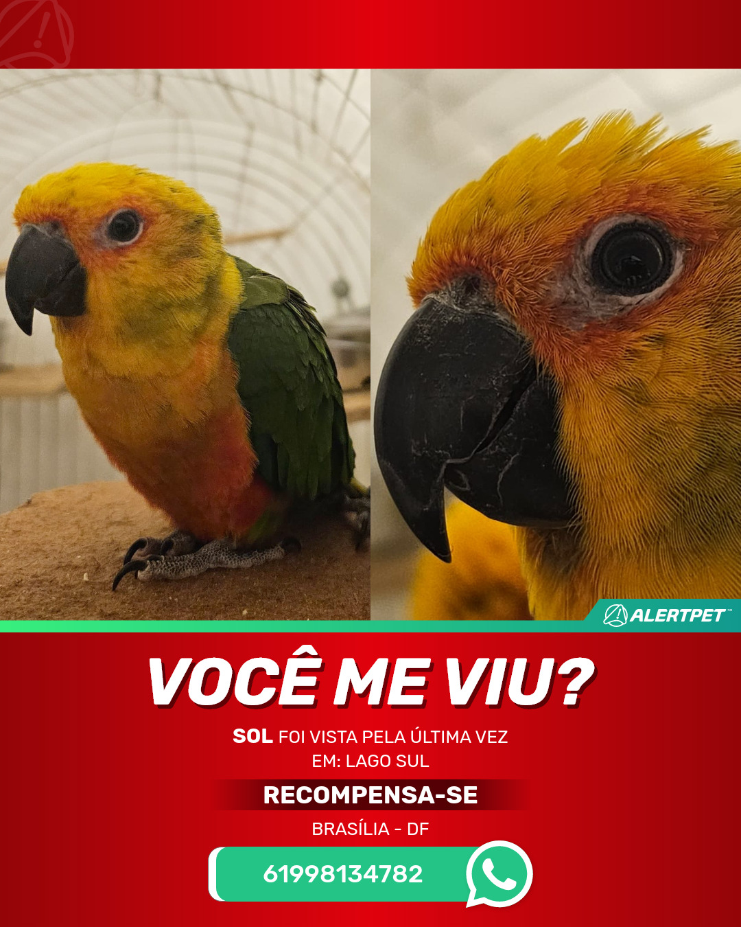 #AlertPet #Procurase #PassaroDesaparecido #Brasilia #ProcuramosSol