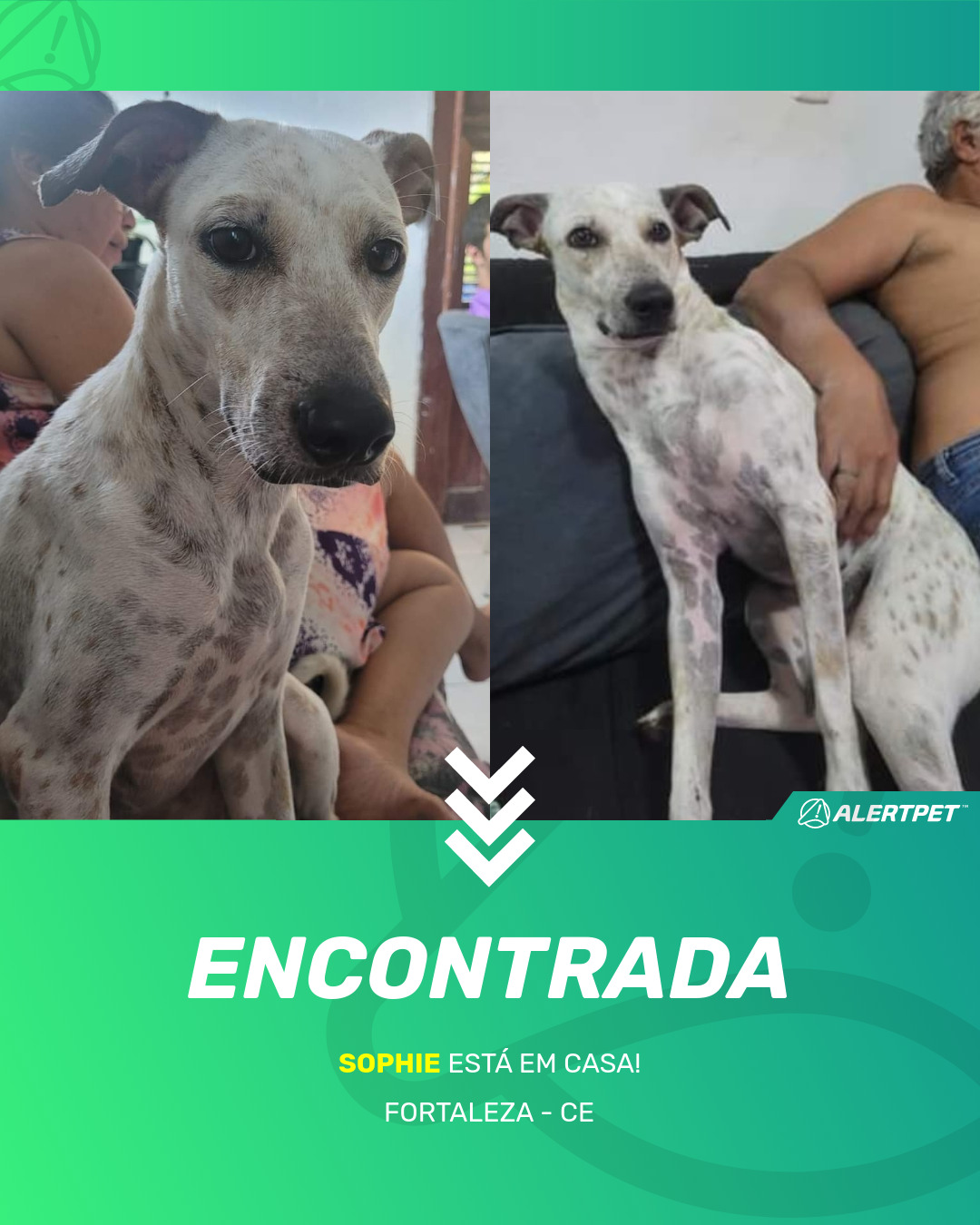 Depois de dois meses a cadelinha foi finalmente localizada graças a um anúncio da AlertPet