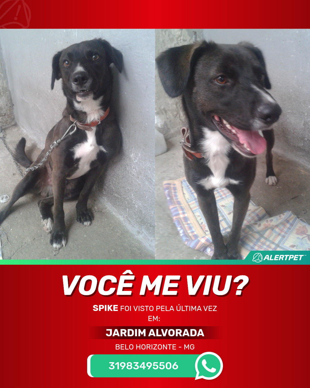 #AlertPet #Procurase #CachorroDesaparecido #BeloHorizonte #ProcuramosSpike