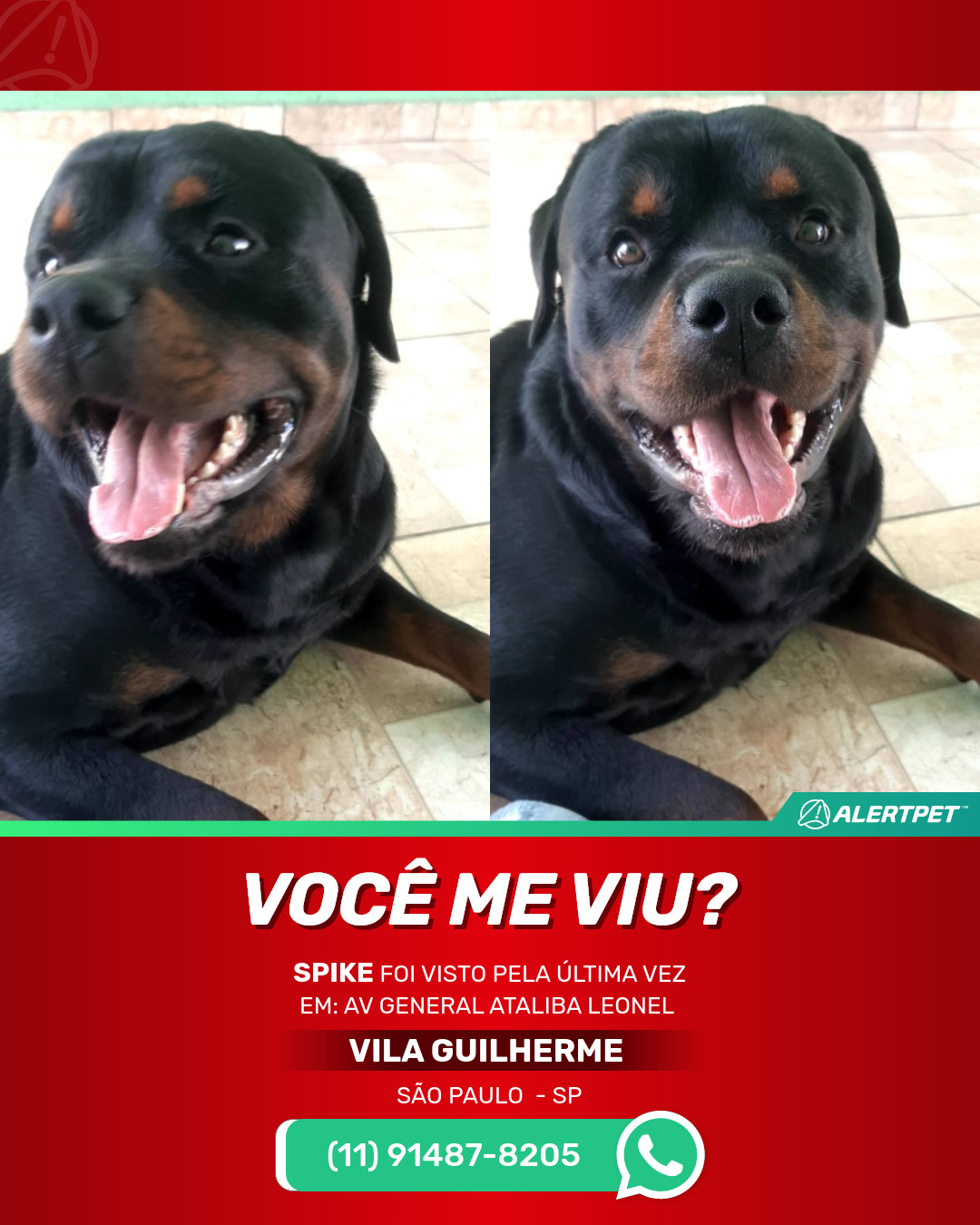 #alertpet #procurase #CachorroDesaparecido #São Paulo #procuramosSpike