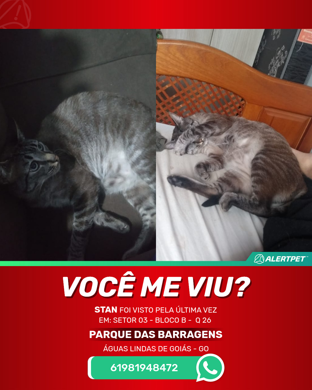 #AlertPet #Procurase #GatoDesaparecido #AguasLindasDeGoias #ProcuramosStan