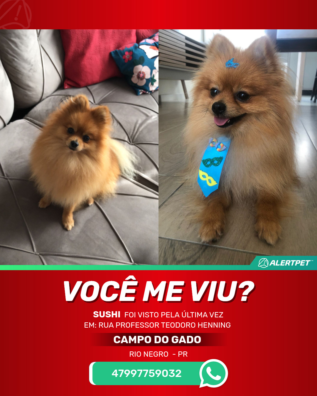 #AlertPet #Procurase #CachorroDesaparecido #RioNegro #ProcuramosSushi