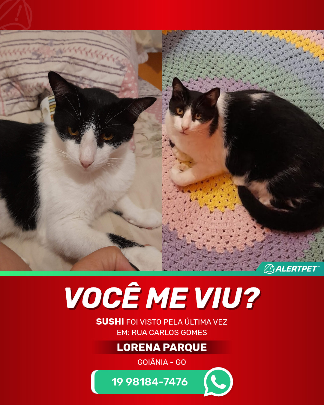 #AlertPet #Procurase #GatoDesaparecido #Goiania #ProcuramosSushi