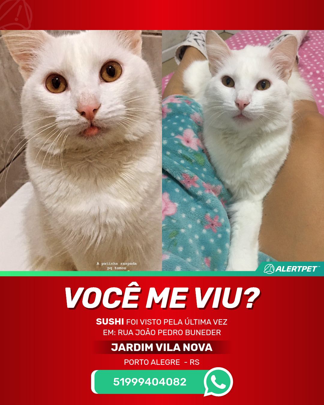 #AlertPet #Procurase #GatoDesaparecido #PortoAlegre #ProcuramosSushi