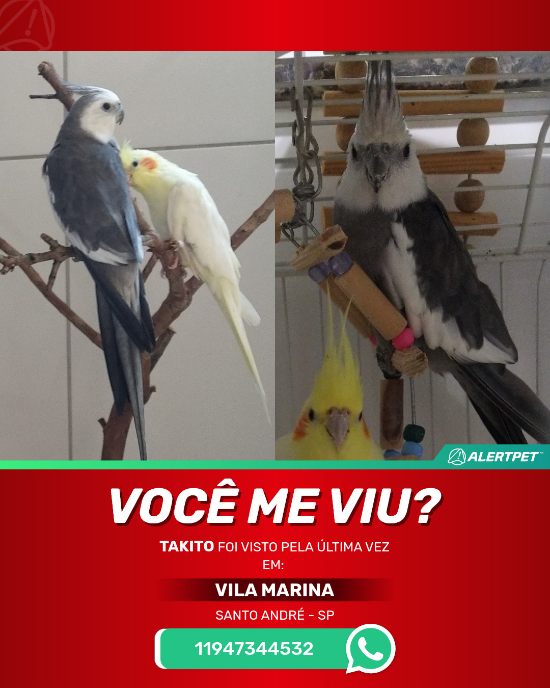 #AlertPet #Procurase #PassaroDesaparecido #SantoAndre #ProcuramosTakito