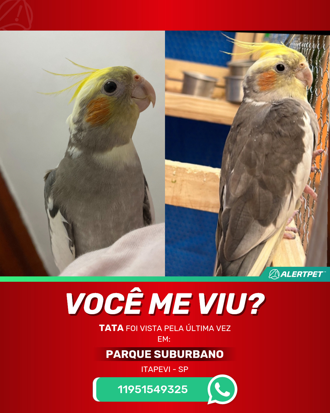 #AlertPet #Procurase #PassaroDesaparecido #Itapevi #ProcuramosTata