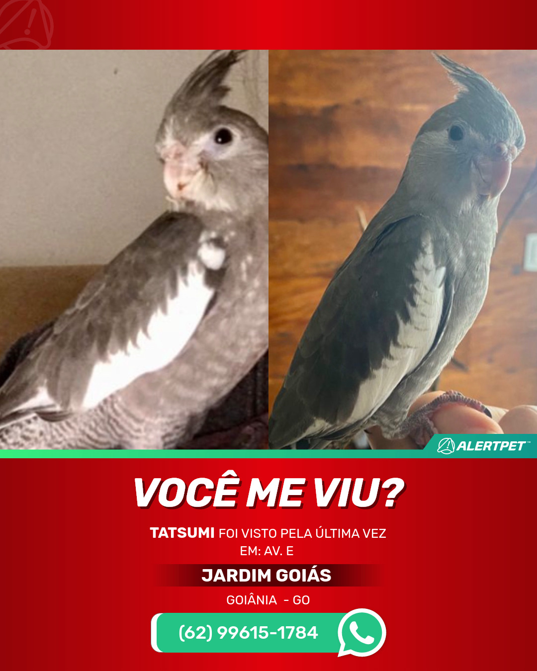 #alertpet #procurase #PássaroDesaparecido #Goiânia #procuramosTatsumi